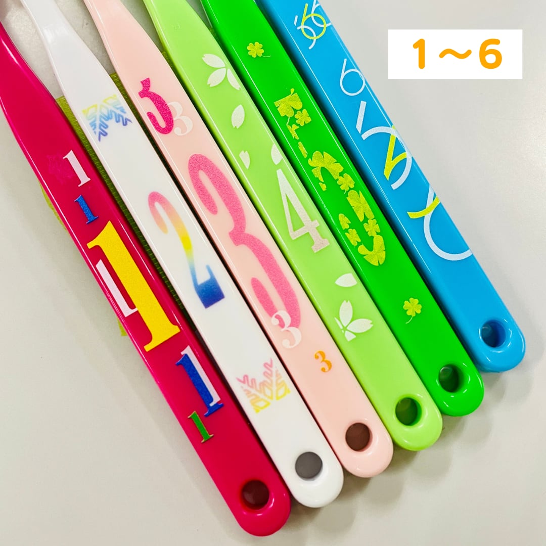 数字がプリントされているので、1月は「1の歯ブラシ」2月は「2の歯ブラシ」などと使えば、歯ブラシを交換する目安にもなり、歯磨きのたびに季節感も楽しんでいただけます。